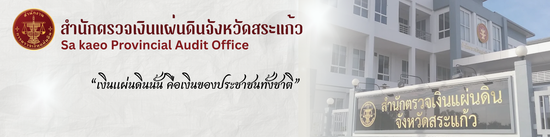 โครงการสัมมนาเพื่อเตรียมความพร้อมการจัดทําแผนปฏิบัติราชการ ปีงบประมาณ พ.ศ. 2570 และทิศทางการปรับเปลี่ยนสู่การตรวจเงินแผ่นดินดิจิทัลของสํานักงานการตรวจเงินแผ่นดินศุกร์, 27 มีนาคม 25692569-03-26 พิธีสวดพระพุทธมนต์และพิธีทำบุญ ครบ 1 ปี อาคาร สตง. (แห่งใหม่) ระหว่างก่อสร้างทรุดตัว ณ สำนักงานการตรวจเงินแผ่นดิน